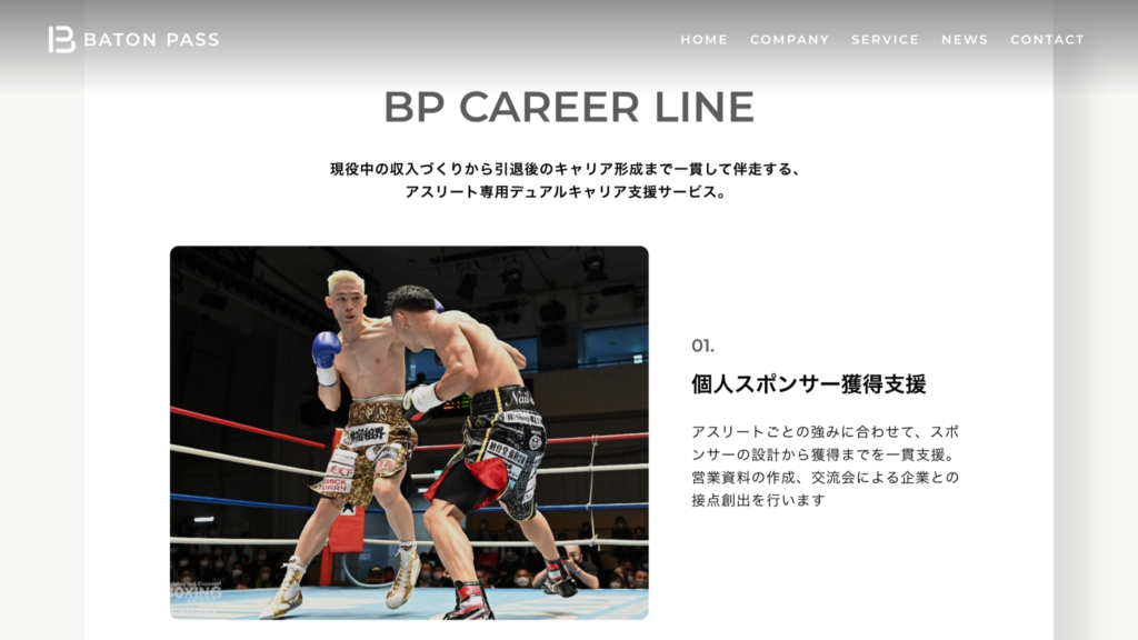 ロゴ開発においては、「ありがとう」と言われるバトンでありたいというコンセプトと、「すべての縁を、次につなぐ。」という企業理念をもとに設計を行いました。社名に込められた“想いや志をつなぐ象徴としてのバトン”という意味を踏まえ、人と人とのつながりを表現するシンボルとして成立するデザインを採用しています。シンプルでありながらコンセプトが伝わるロゴとすることで、今後のアパレル展開も見据えた汎用性の高いブランド表現を実現しました。また、コーポレートサイトでは企業の信頼感を担保しつつ、事業内容が直感的に理解できる情報設計を行いました。採用支援/営業支援/イベント企画/マーケティング支援の4事業を整理し、トップページ直下にサービス一覧を配置することで、訪問者が全体像を把握しやすい構成としています。これらの取り組みにより、企業理念からアウトプットまでが一貫した形で整理され、社外に対して伝わる状態を構築しました。